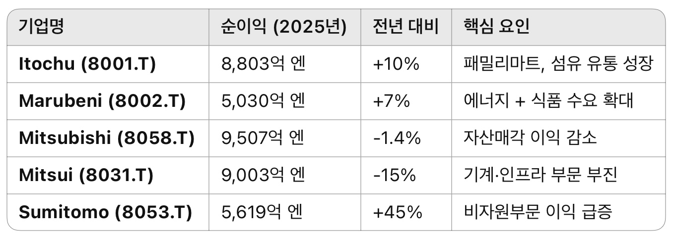 🇯🇵 일본 5대 종합상사: 2025년 사업 부문별 실적 및 향후 전망